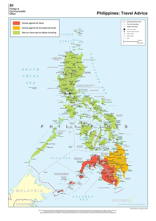 前面有提到目前菲律賓南部民答那峨島一帶,還算是政治動盪不安的區域,那宿霧會不會離這些區域很近?假日跳島玩樂會不會誤觸這些危險地帶?地理小老師小編來帶大家認識一下菲律賓的地圖(咦)~