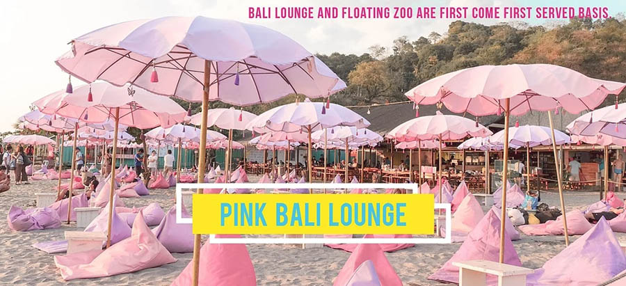 除了海上設施,這裡最吸引人的莫過於岸邊的「粉紅沙灘」!放眼望去,整片沙灘擺滿了粉嫩的陽傘與懶骨頭沙發,充滿了少女心的夢幻氛圍,是 Instagram 打卡的絕佳聖地。