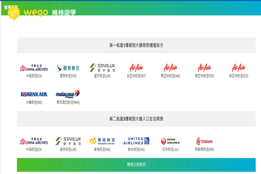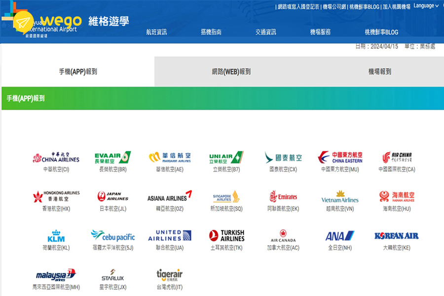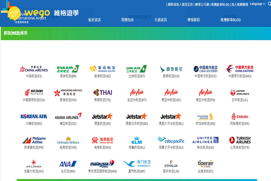 這麼簡單的操作步驟,同學們還沒試過的下次搭機來嘗試看看吧! 以下是桃園機場有開放機場自助報到的航空公司: