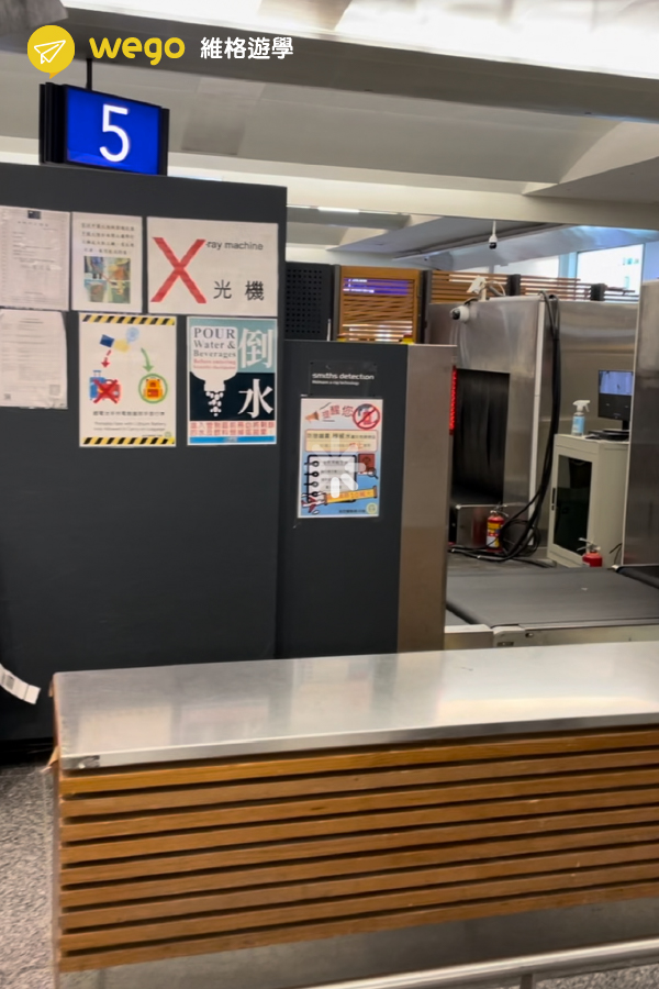 行李托運後我們會上樓排隊離境,一開始會先需要掃驗登機證及護照確認後才會進入到安檢區域,在安檢之前會有很多垃圾桶,記得隨身行李中不要帶不能帶的就在垃圾桶丟棄(例如:防風打火機/水/飲料/防狼噴霧等等),排隊時拿籃子將包包、跟身上所有有金屬的東西(皮帶手錶等) 放置於盒子內,筆電、平板及手機需獨立一個盒子,放置好後過X光機,旅客過安檢後將隨身行李收拾好出關排隊人工海關查驗或者自動通關。