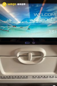 進入登機通道後~機組人員會在登機入口處迎接你!只需要找到您的座位號碼,將隨身行李放置於座位前方或上方行李櫃,就完成所有搭機程序囉!