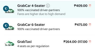 請注意,GrabCar (私家車) 服務並非在所有菲律賓地區都有提供。例如,在碧瑤 (Baguio) 地區,目前僅有 GrabTaxi (計程車) 服務。