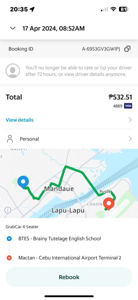 在宿霧等語言學校密集的地區,尖峰時段計程車供不應求。提前在校內使用 Grab 叫車,或請警衛協助叫車,是最安全方便的選擇。根據我們的經驗,推薦使用 Grab 的三大理由: