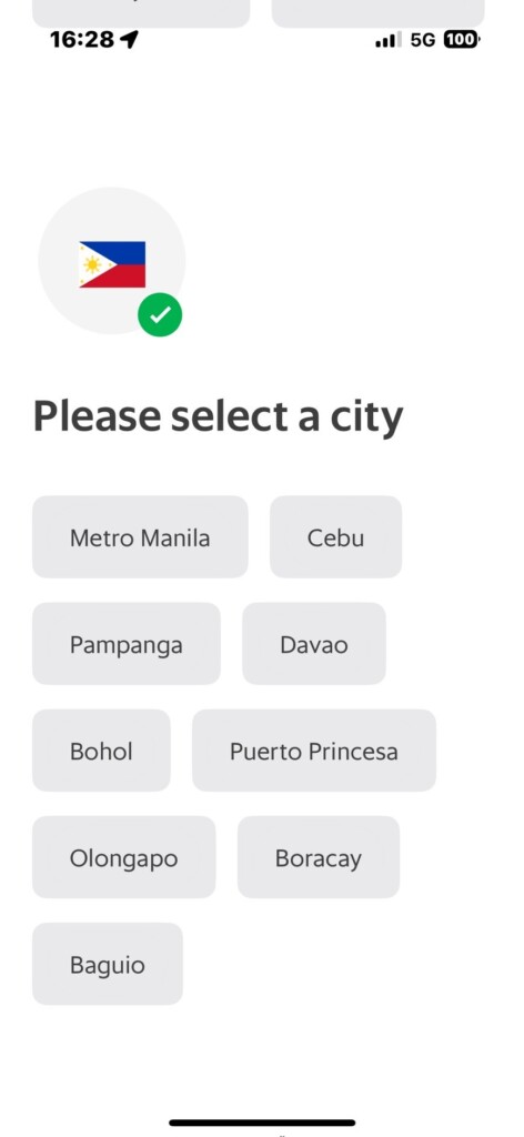 請選擇「菲律賓」以及您所在的城市(例如:Cebu)。