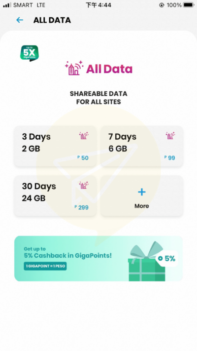 在主畫面下方點選【ALL DATA】。進入後,再次點選上方的【ALL DATA】頁籤,這裡提供的是純數據流量方案,CP值最高,建議優先選擇。您可以依據個人每月用量選擇合適的GB方案。