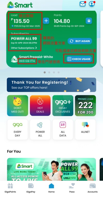 步驟二:儲值教學 (抵達菲律賓當地再操作)