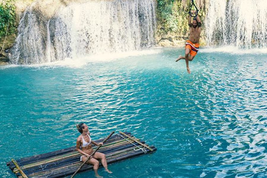 • Cambugahay Falls:Tiffany 藍瀑布,繩索盪進水裡超療癒。