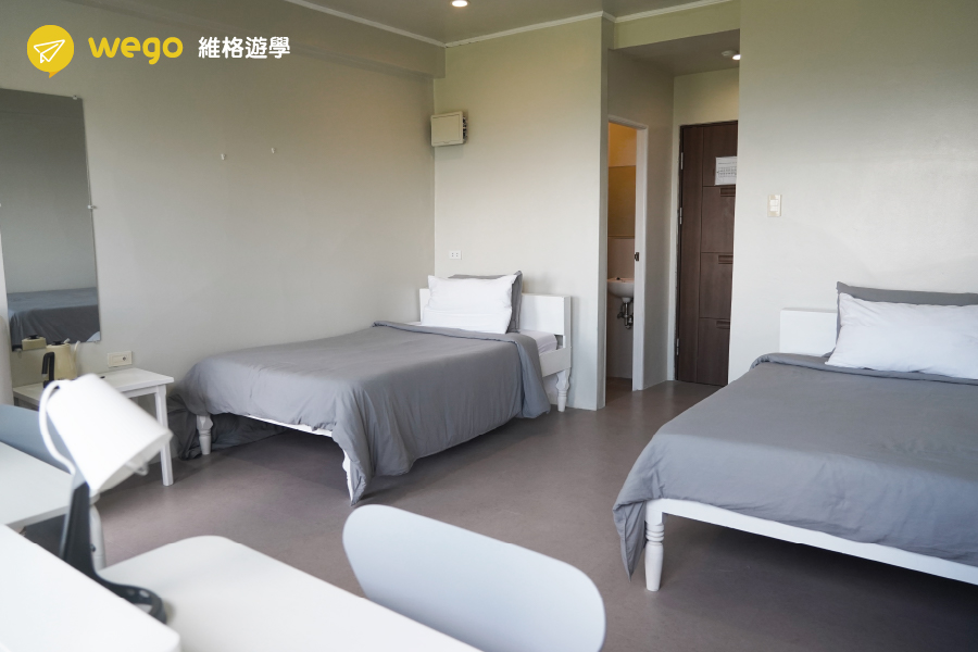 • 提供單人房(套房)、單人雅房(2或3房+公共客廳)、雙人(套房)、四人(上下舖套房)。宿舍附冰箱、除濕機、吹風機、床、書桌椅