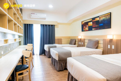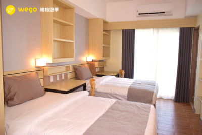 • 宿舍附床/密碼櫃/衣櫃/書桌/冰箱/冷氣/浴室/無線網路/吹風機。