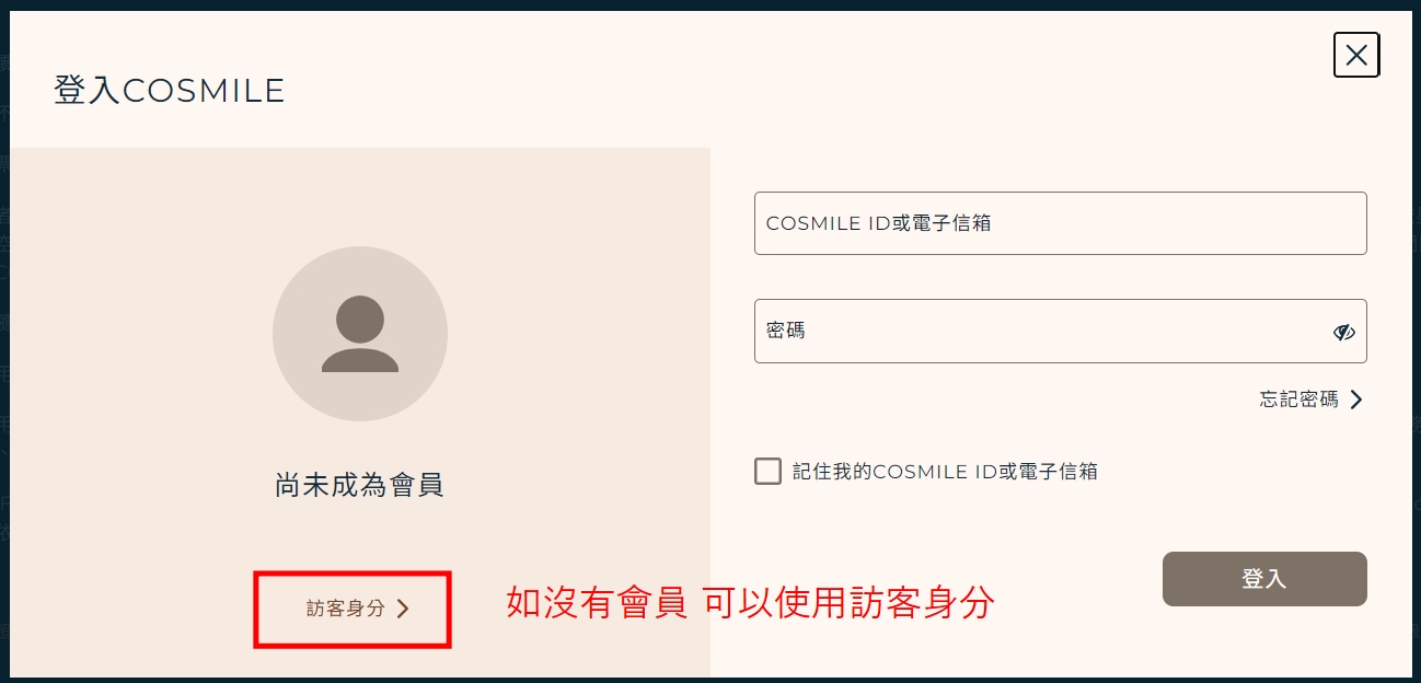 完成選擇後,系統會顯示您的行程總覽,請再次確認日期與時間無誤。您可以選擇以會員身分登入以累積里程,或直接以訪客身分繼續訂票。