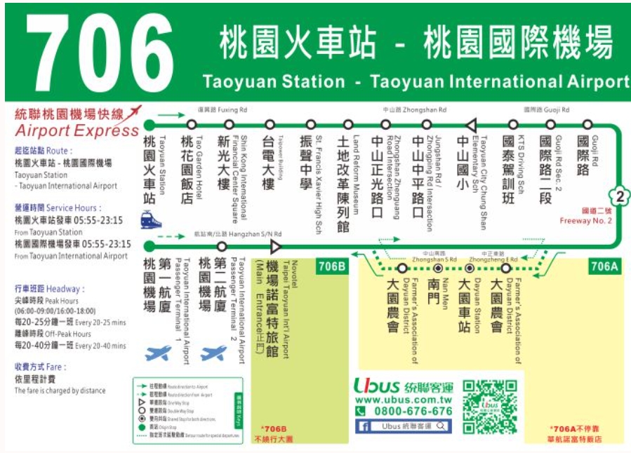 台中站-桃園站-統聯客運【706】公車桃園機場