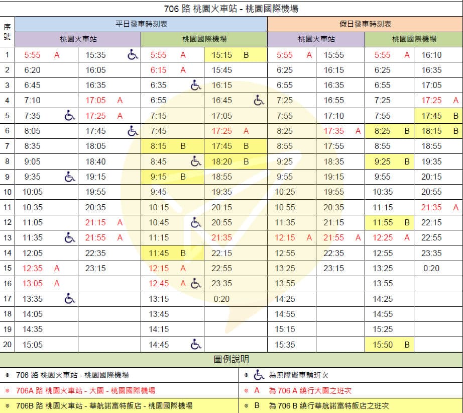 抵達桃園台鐵站後:出火車站後,【706】公車站牌位於走出火車站,在桃園遠百百貨公司旁邊,位置算是滿好找的。公車線除了主線之外,還分為A、B線,A線會多停「大園」站;B線則會多停「華航諾富特飯店」,時間上的掌握自己也需要斟酌一下唷!