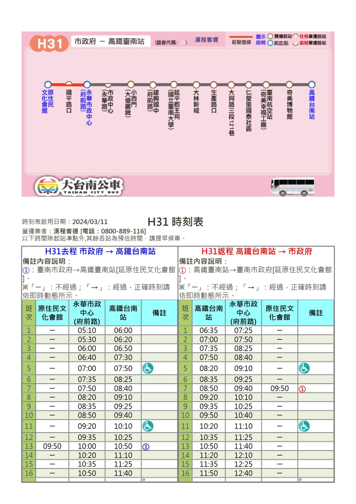 起站:永華市政中心(府前路二段及府前四街交叉口)