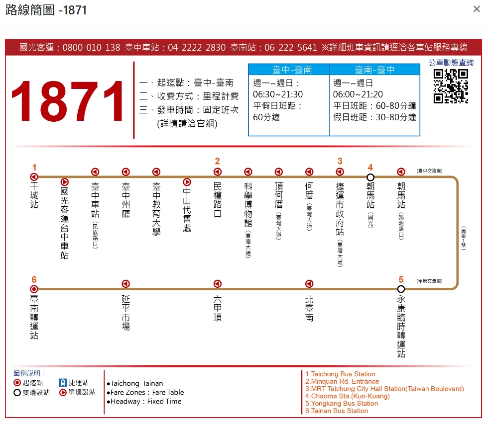 ※1871班次台南到台中朝馬路線圖※1860班次台中朝馬到桃園國際機場路線圖
